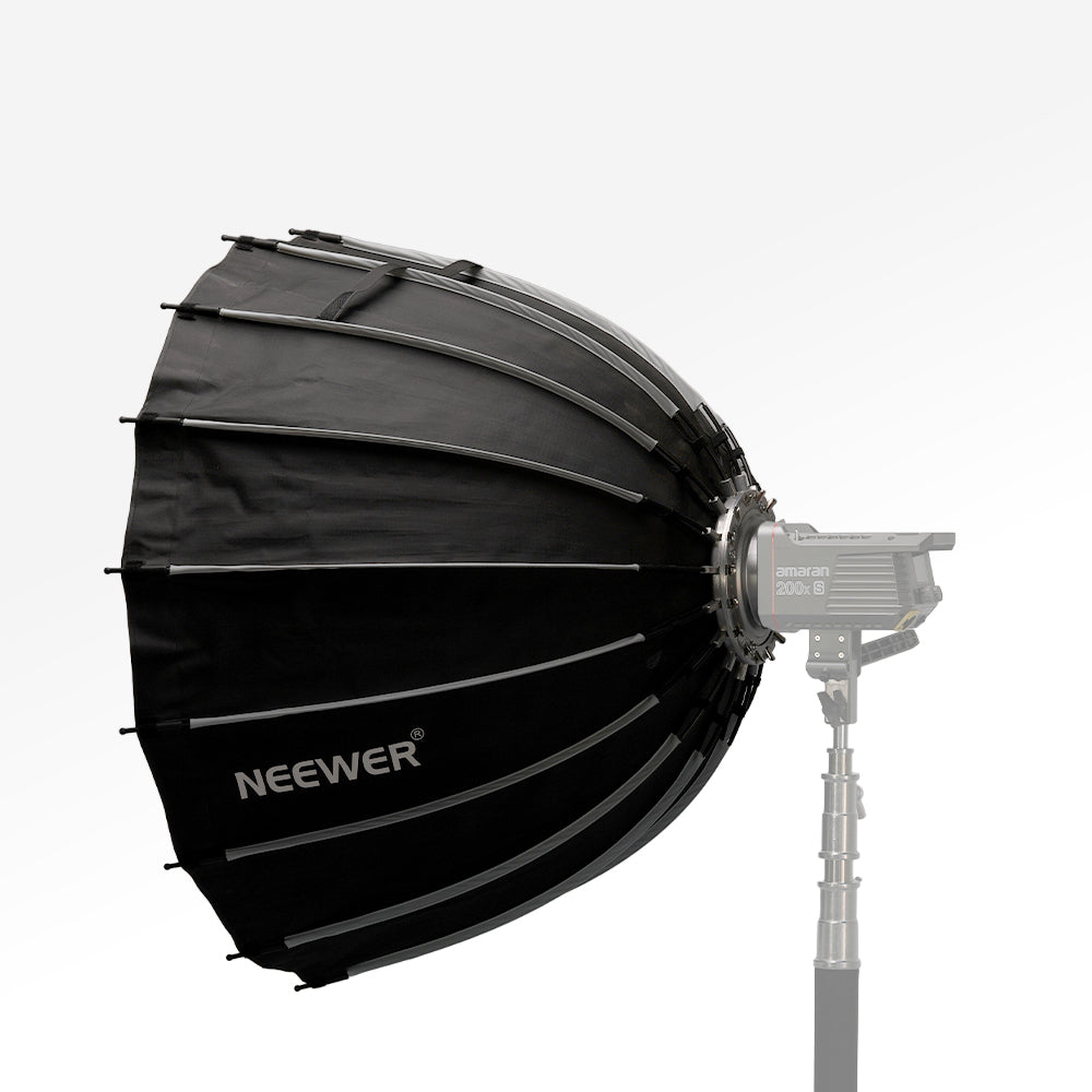 El Neewer Parabolic Quick Release Softbox es un modificador de luz diseñado para ofrecer una iluminación suave y uniforme en fotografía y video. Su diseño parabólico mejora la direccionalidad y el control del haz, mientras que el sistema de armado rápido (quick release) permite una instalación y desmontaje eficientes en set.